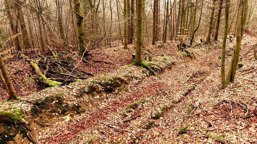 links im Vordergrund eine Verbindung zwischen den zwei Hohlwegen